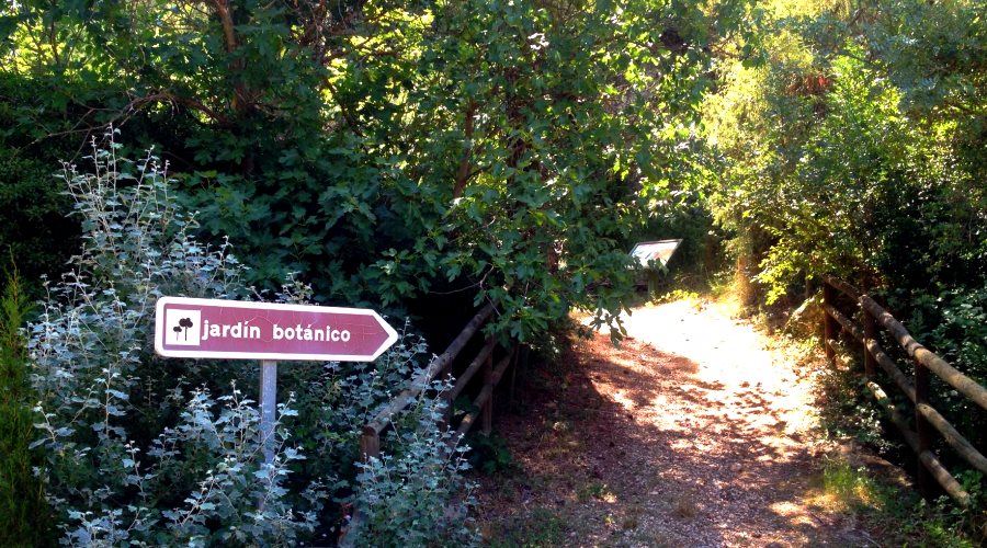 El primero es el entrañable Jardín Botánico del pueblo, justo enfrente del hotel, con los accesos desde el aparcamiento.