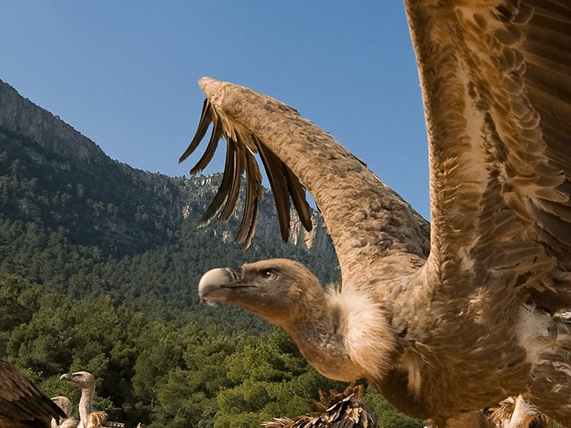 ¡El Observatorio de buitres Mas de Bunyol os encantará! José Ramón o “Buitreman”, su fundador, lleva 25 años alimentando buitres salvajes en Beceite.