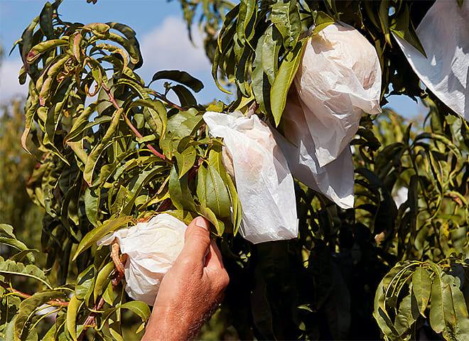 Se emplea la técnica tradicional del embolsado individual de los frutos en el árbol, el cual se realiza entre los meses de junio y julio, debiendo permanecer la bolsa de papel parafinado hasta el momento de la manipulación protegiendo de esta forma al producto de tratamientos, caídas y plagas, garantizando su pureza ya que no entra en contacto con ningún tipo de productos fitosanitarios ni con agentes externos.